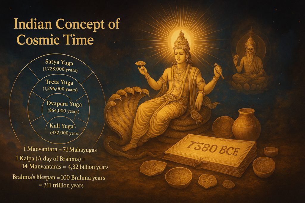Western thought limits the universe to a few thousand years. But Indian cosmology expands our mind to trillions. According to the Puranas and Vedic texts, time flows in cycles of unimaginable proportions.